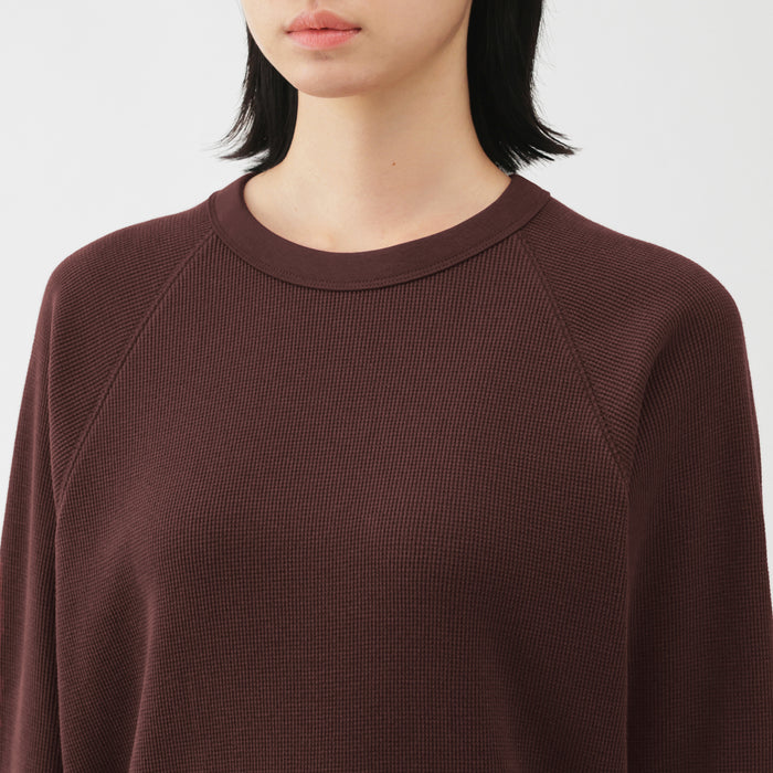 Lightweight and soft, this long-sleeved crew neck T-shirt is made from a cozy organic cotton material with an uneven waffle texture that doesn't stick to your skin, keeping you comfortable even in warmer weather.