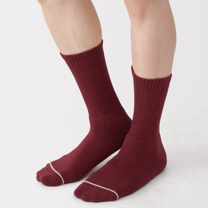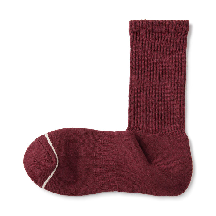 Like our Warm Cotton Series innerwear, these thick socks combine moisture-wicking, heat-generating organic cotton with warm wool for excellent insulation. The inner yarn features deodorising properties to help suppress sweat odours. A line is stitched at the toe for easy identification when stored.