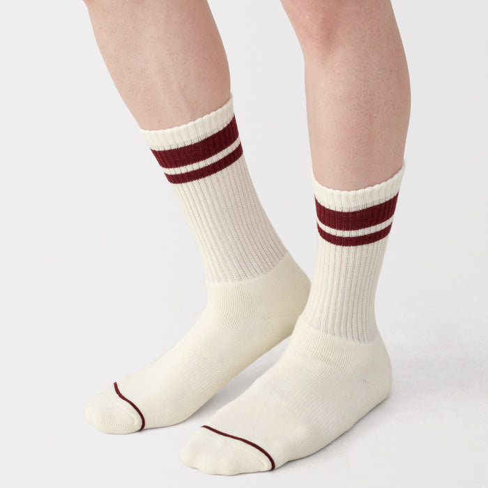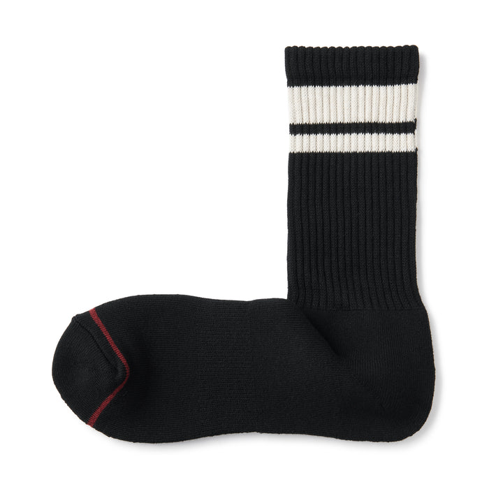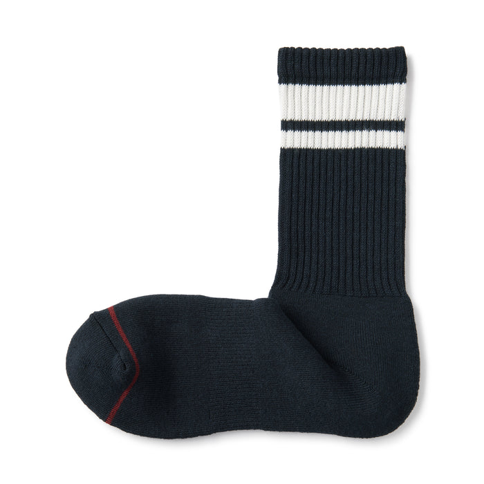 Like our Warm Cotton Series innerwear, these thick socks combine moisture-wicking, heat-generating organic cotton with warm wool for excellent insulation. The inner yarn features deodorising properties to help suppress sweat odours. A line is stitched at the toe for easy identification when stored.