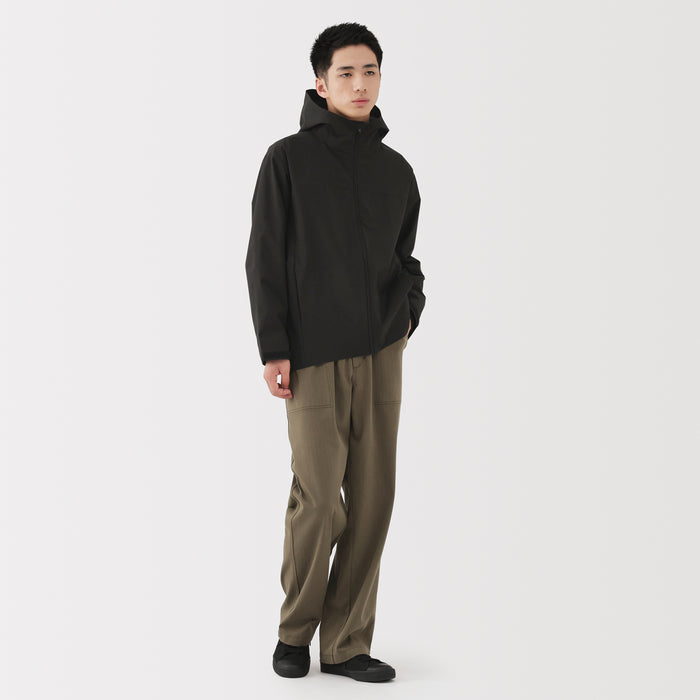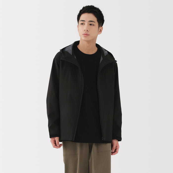 This men's hooded jacket is water-repellent and breathable, great for all seasons and occasions. Lightweight and perfect for layering in mild weather. The cuffs can be adjusted and tightened with hook-and-loop fasteners to keep warmth inside.