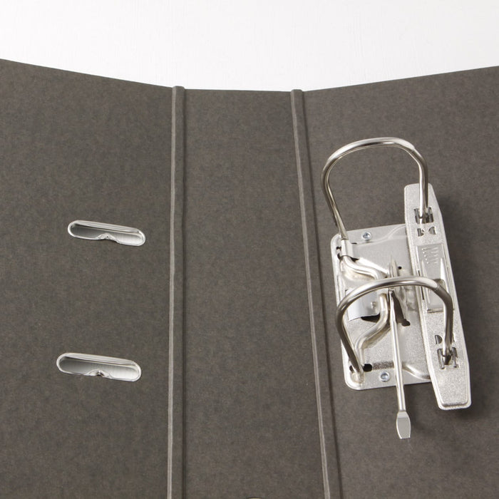 This file holder has large arch-shaped rings, storing a maximum of 500 sheets of A4 copy paper. The bottom corners are reinforced with metal. When closed, the cover locks with the rings, keeping it secure.