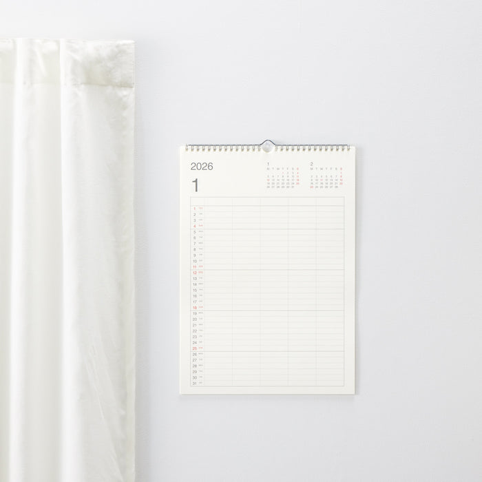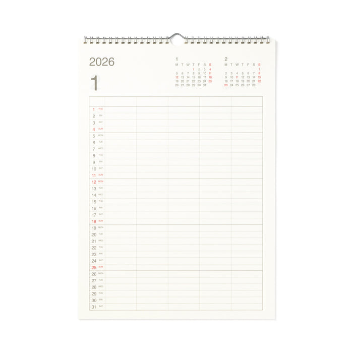 Plan out your year with this A3 vertical wall calendar, featuring a double-ring binding and conveniently designed hanging bar. It features 5 separate columns that can be shared with up to 5 people, making it easy to organize and coordinate your schedules with your family or roommates.