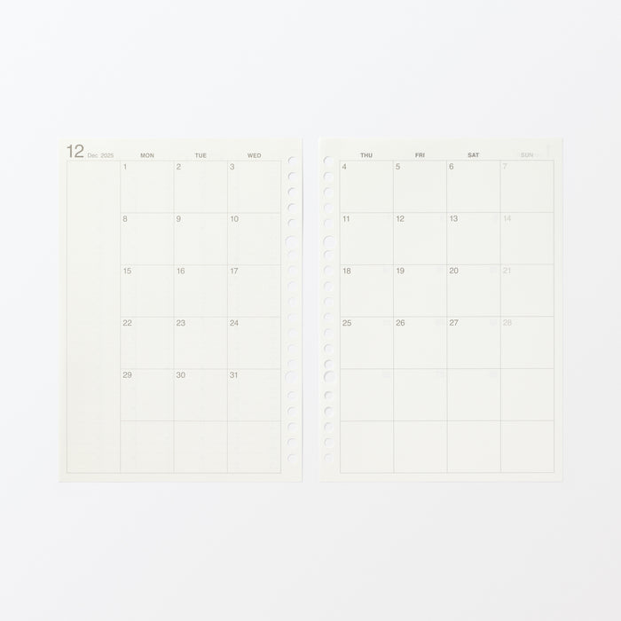 A5 Loose Leaf Paper Monthly Planner From Dec. 2025 - No Holidays