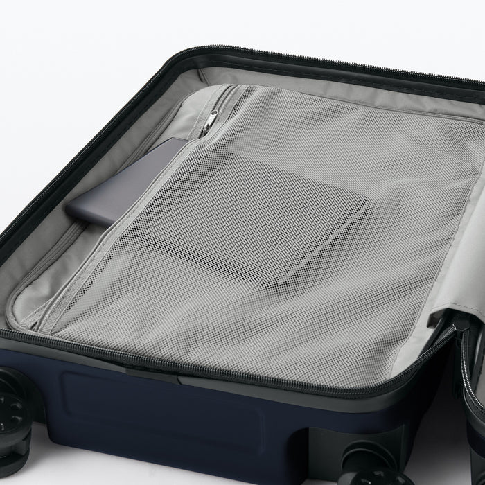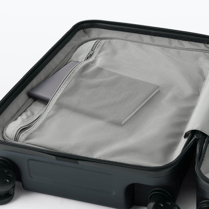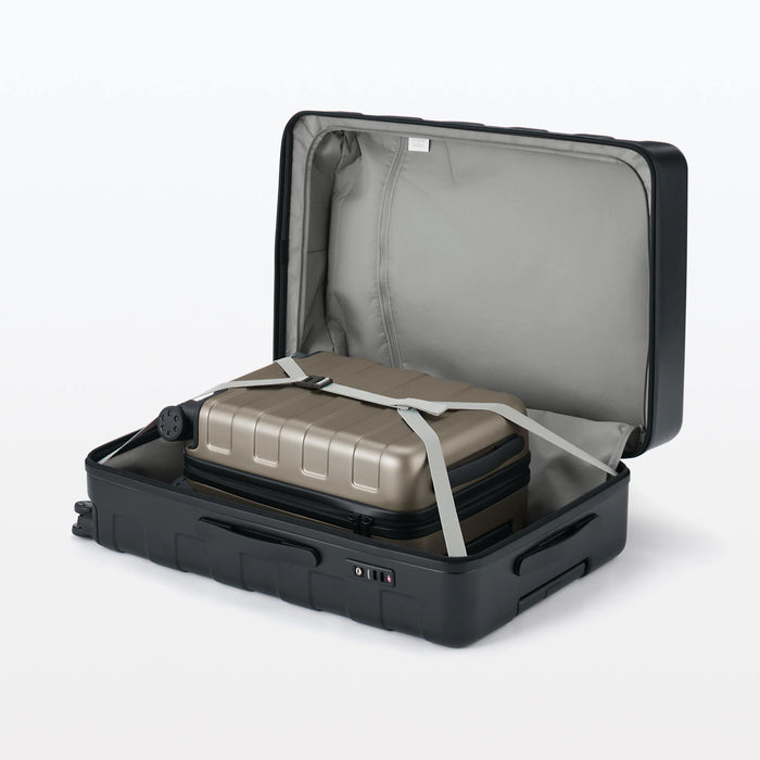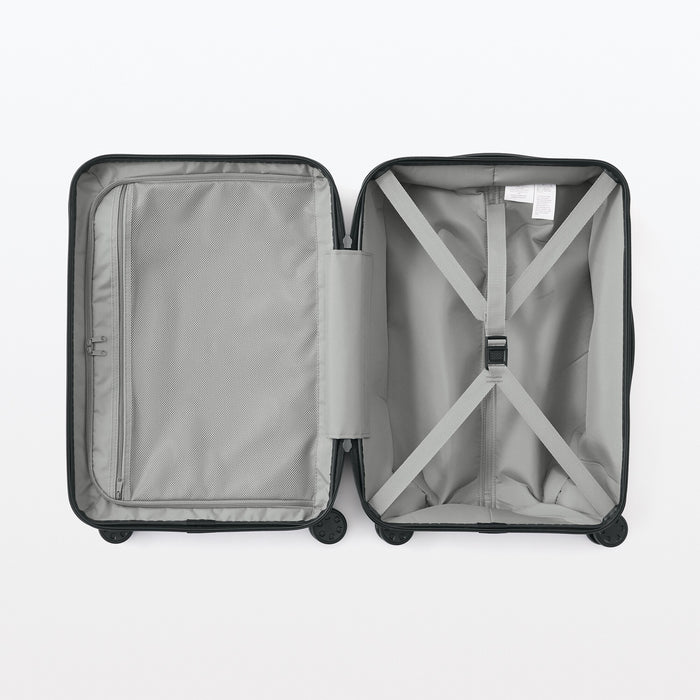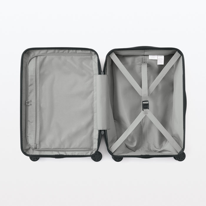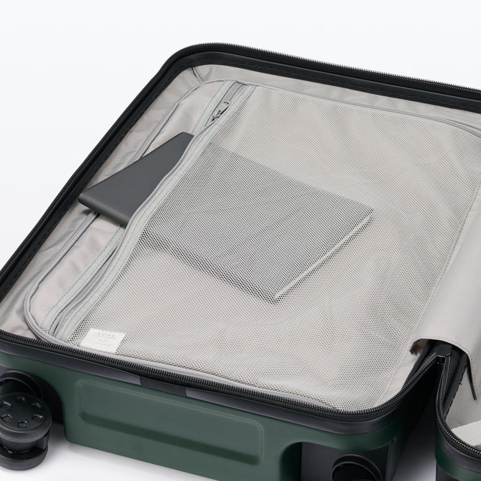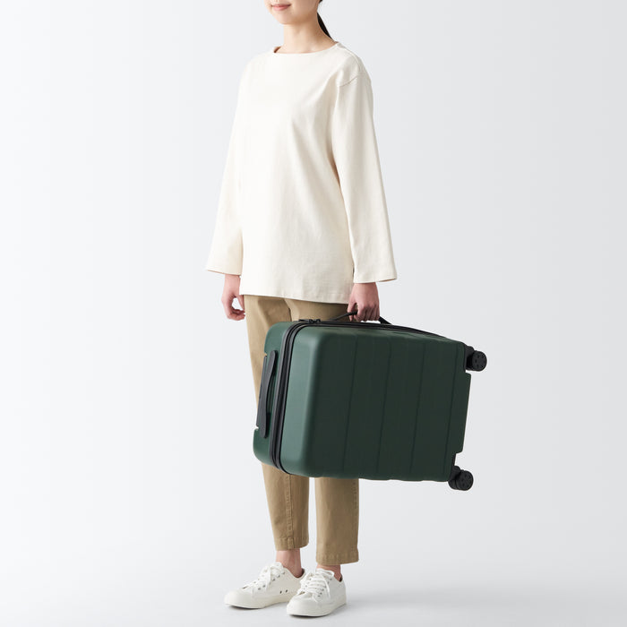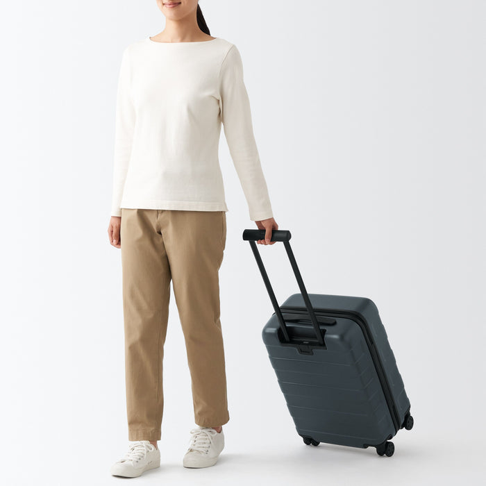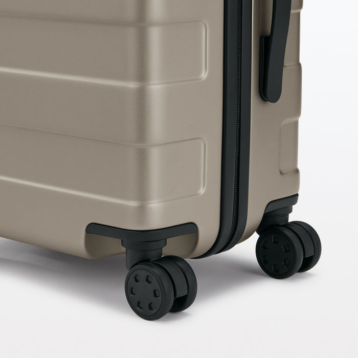 A suitcase featuring a wheel stopper function and a handle that can be easily adjusted. The material has been reviewed, and the weight has been lightened from previous models, allowing you to carry more. It adopts a twin-wheel caster which runs quietly and smoothly. A TSA-approved lock is built in, so you can know that airports won't need to break a padlock on your bag if they have to check inside.
