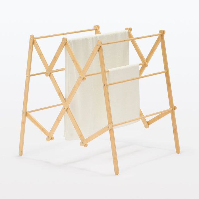 This rack is made of durable and flexible bamboo material. Lightweight and compact, so you can save space and increase storage. Perfect for tightly wrung laundry.
