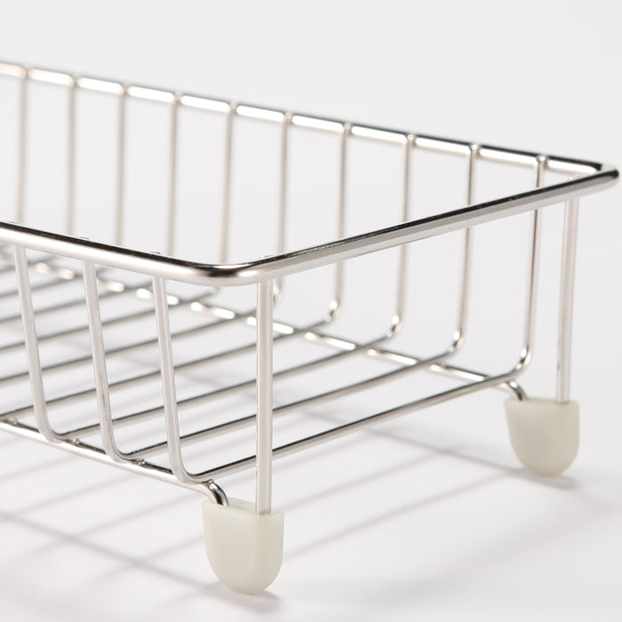 A bottle rack that can be used in the kitchen or bathroom, made of durable, rust-resistant steel. It is the perfect size for 4 MUJI PET Refill bottles.