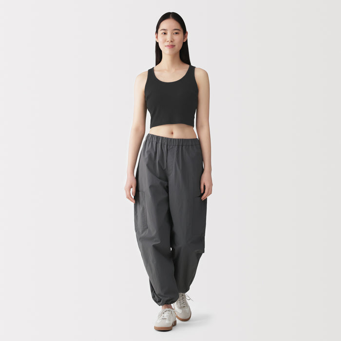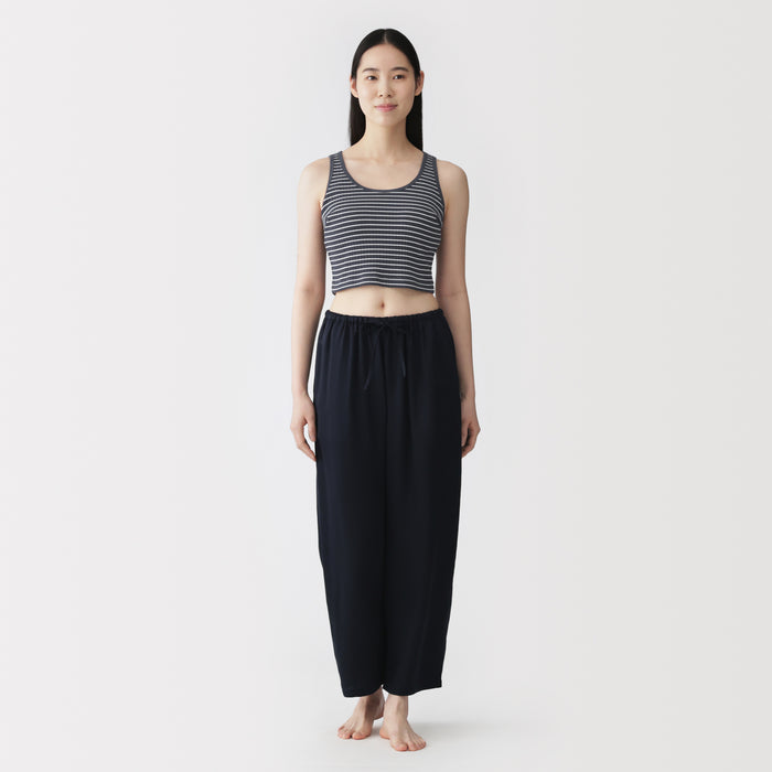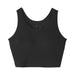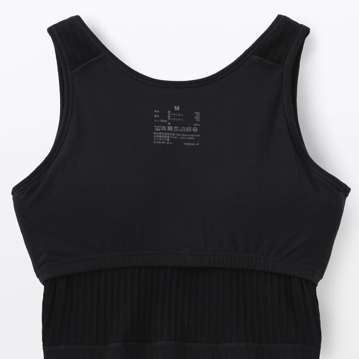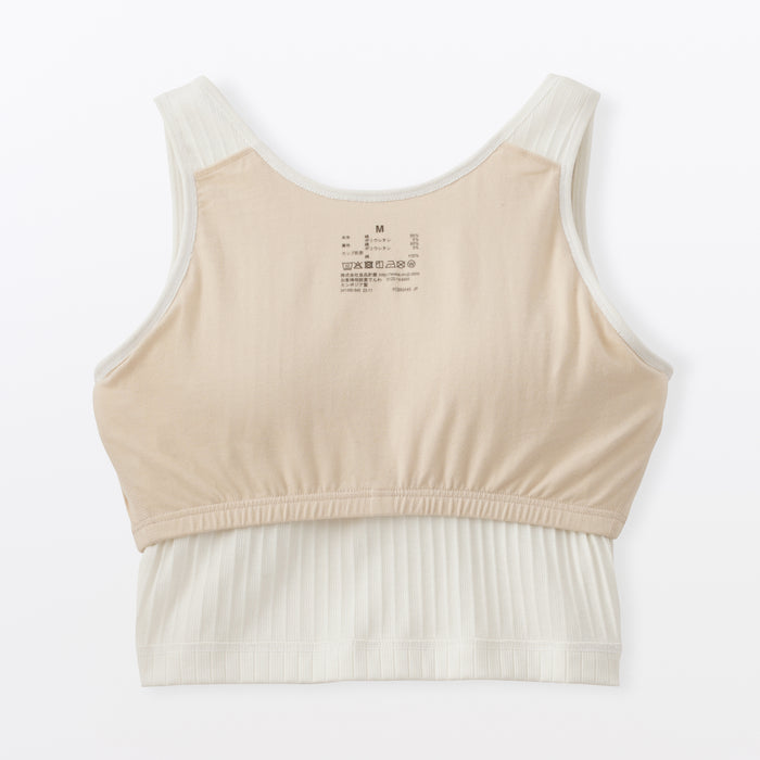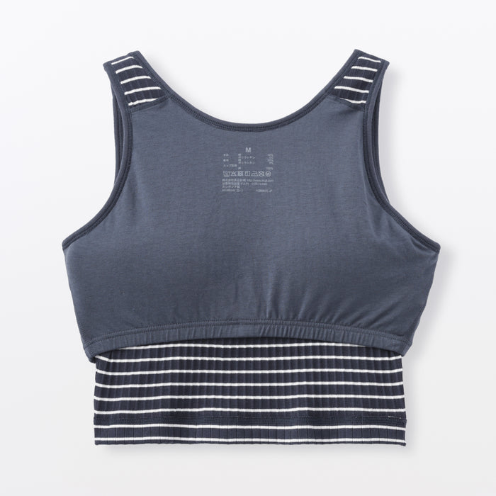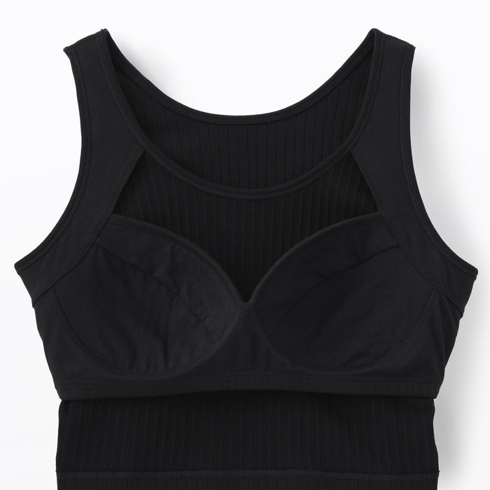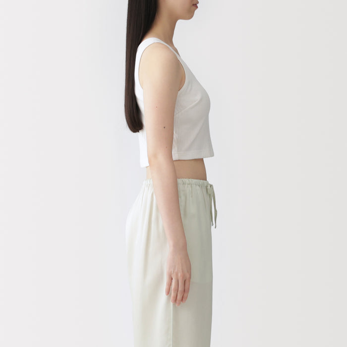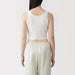 A cropped tank top with a built-in bra so you only need to wear one layer. Made with stretchy organic cotton, the material is soft and comfortable to wear on warm days.