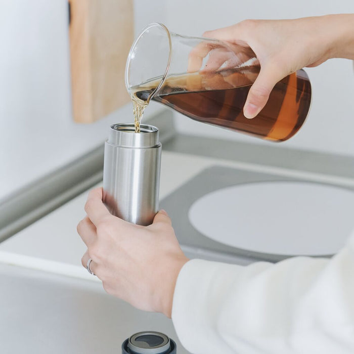A sleek heat-resistant glass carafe that works to serve both hot and cold beverages, with a spout for precise pouring without any mess. The wide opening and uncomplicated design make it easy to clean after each use.