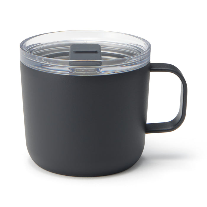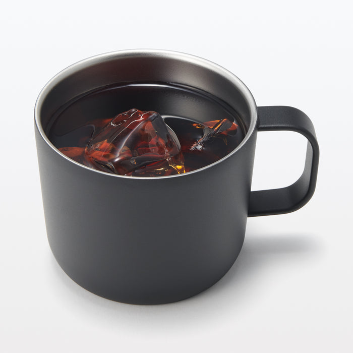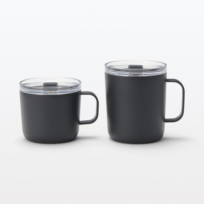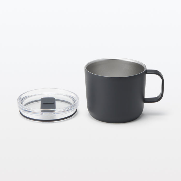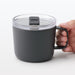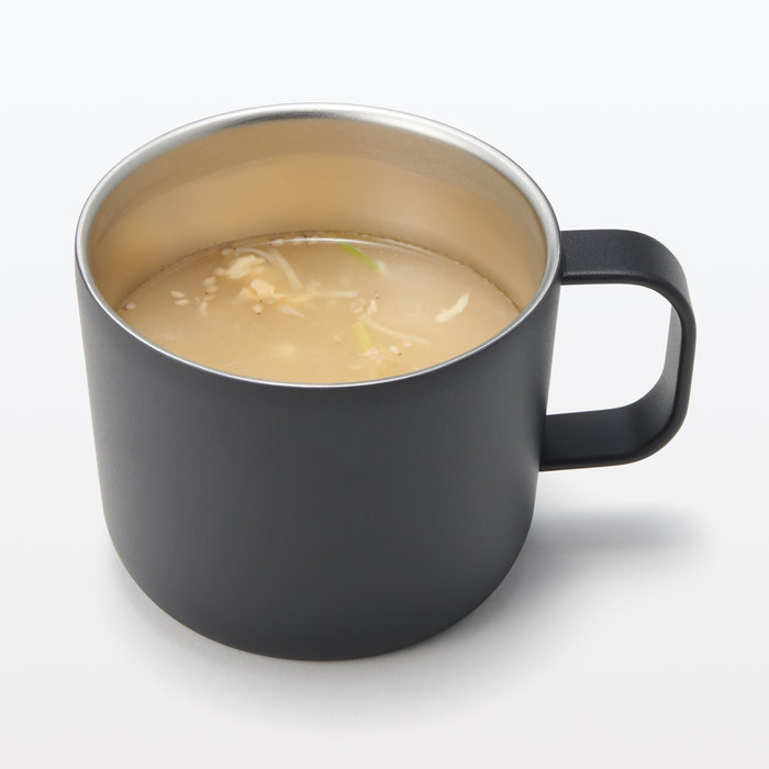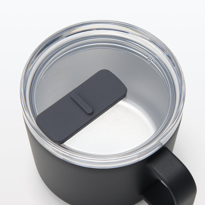 This travel mug is made of rust-resistant stainless steel, featuring a convenient handle and a simple sliding lid that is easy to use. It has a vacuum-insulated double-layer structure for excellent heat and cold retention. This design ensures that the outer layer does not accumulate condensation or become too hot while in use, making it comfortable to hold. The mug's interior has fill lines for easy measuring when preparing instant soups and powdered drinks.