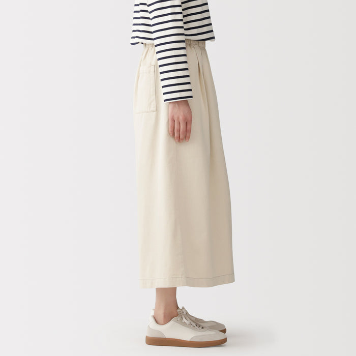 These high-waisted wide leg skirt pants are made with organic cotton and kapok fibres blended into a thin lightweight fabric for an airy, comfortable texture.