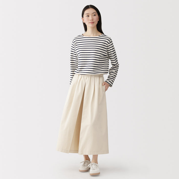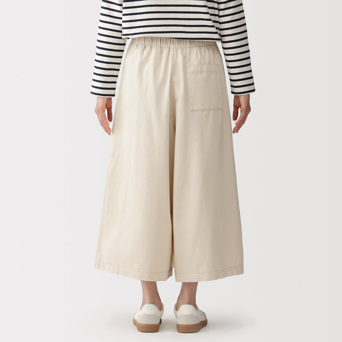 The calf-length design and front box pleats make them look like a skirt, made with just the right amount of volume. The elastic waistband is adjustable with a drawstring on the inside of the pants.