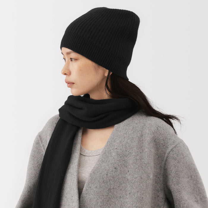 A slightly thick knitted cap made using downy winter hair of cashmere goats raised on the harsh cold Mongolian Plateau. The cashmere is dyed using its natural base colour. Long fibre cashmere down creates a luxuriously soft and supple texture, wrapping you in a cozy warmth.