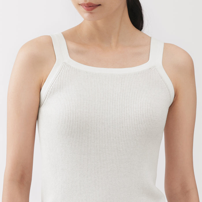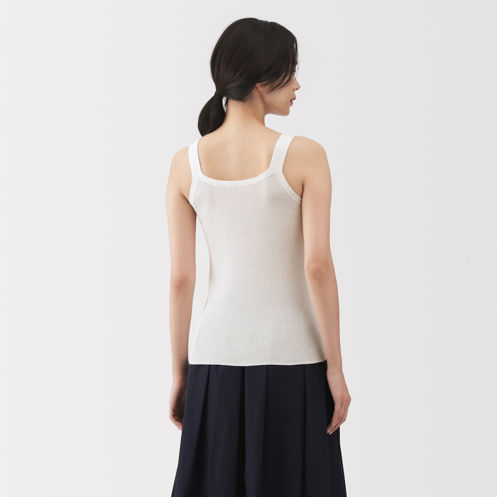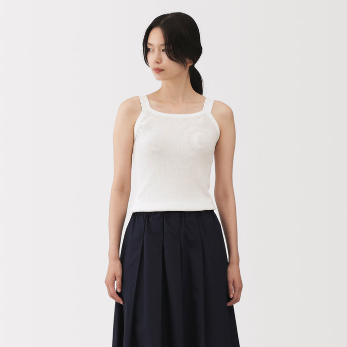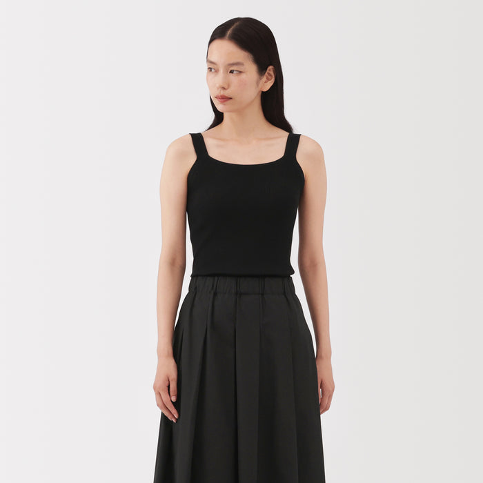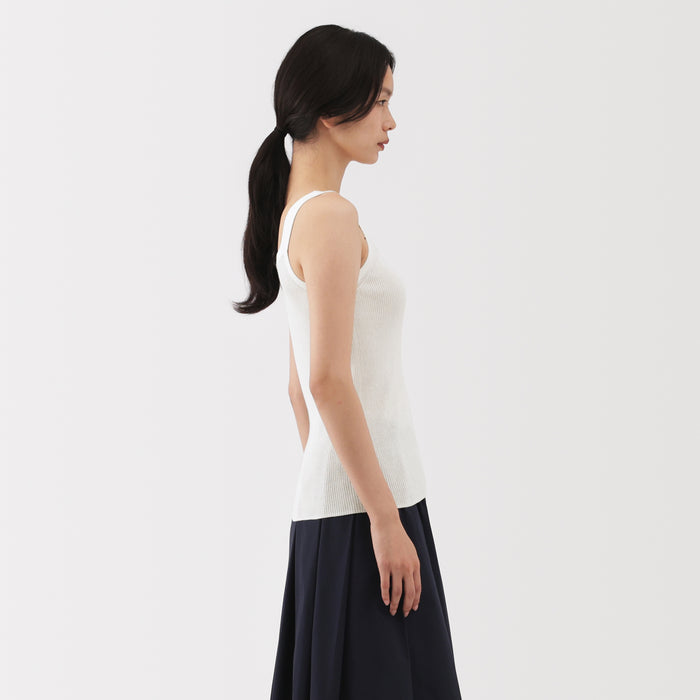 A lightweight casual knit tank top made in a ribbed structure, ensuring a clean, flattering fit that hugs the body. It is thick enough to wear on its own, or layered underneath a T-shirt or cardigan.