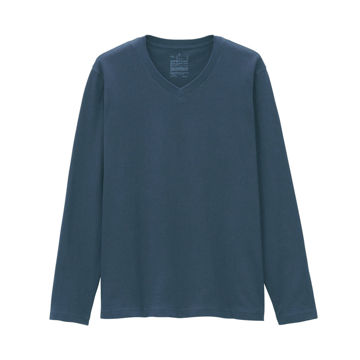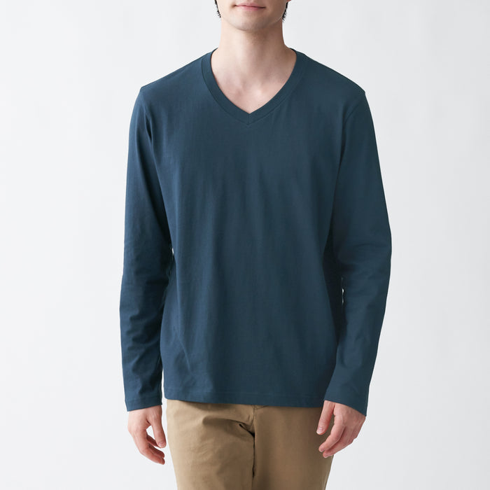 Men's Indian Cotton Jersey Stitch V-Neck Long Sleeve T-Shirt
