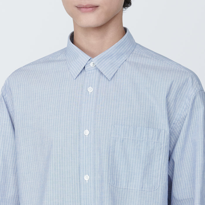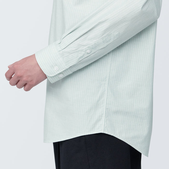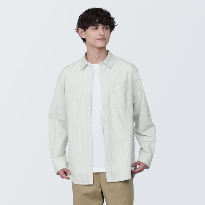 A classic cotton broad shirt that is light with a loose silhouette. The cotton fabric was pre-washed during the manufacturing process to preserve the original softness of the fabric.