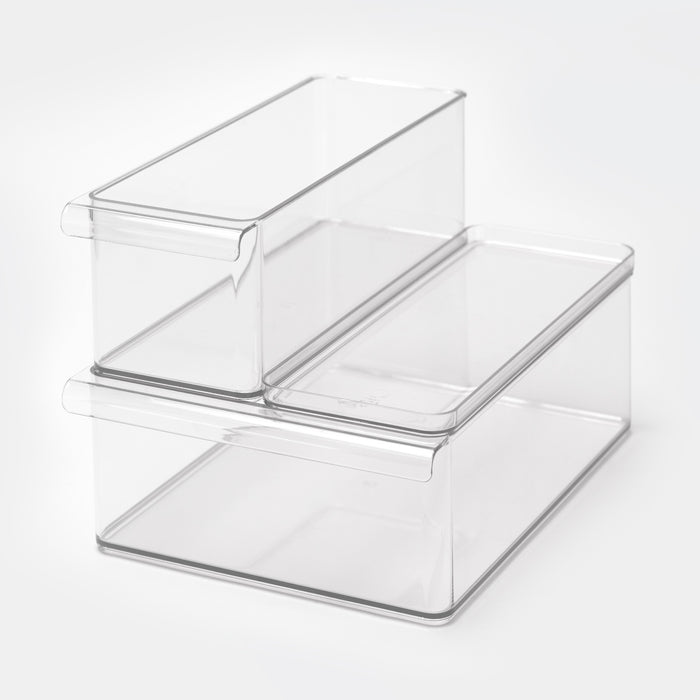These large PET deep storage boxes are perfect for organizing your kitchen or bathroom. Their clear design makes it easy to see the contents, and a built-in handle ensures convenient access.