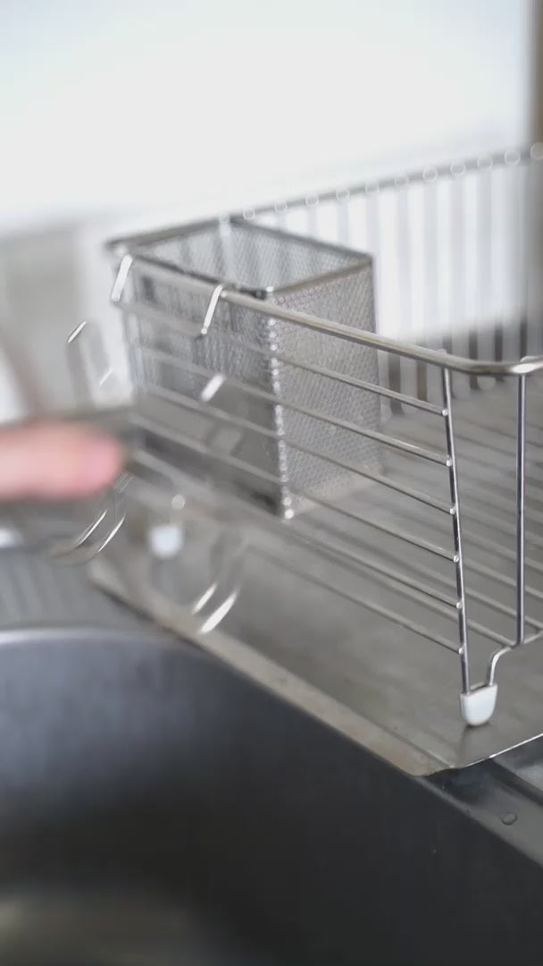 This stainless steel hook can be hung on a dish drainer rack to dry bottles and glasses easily after washing.