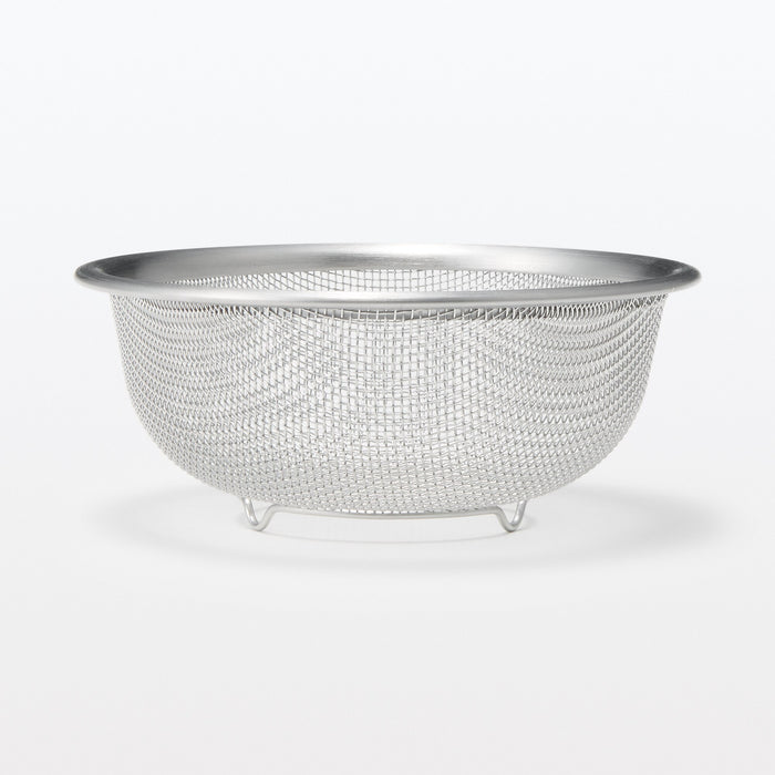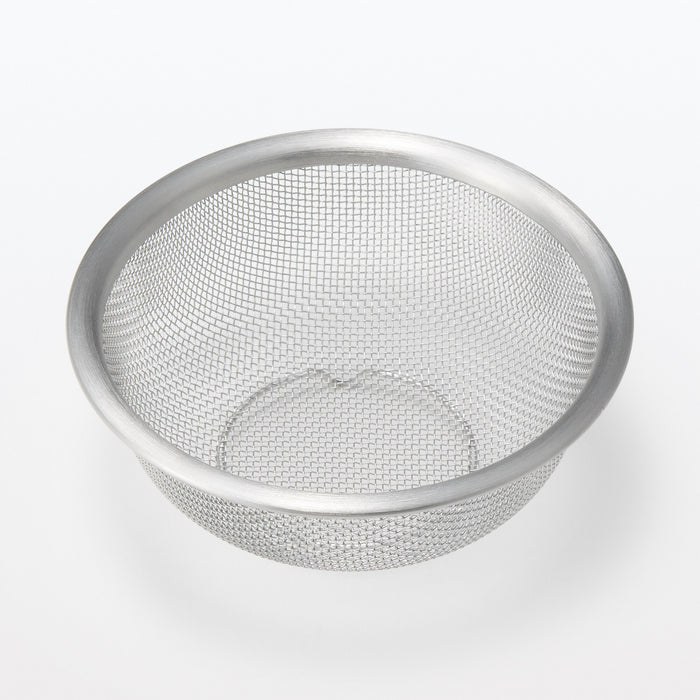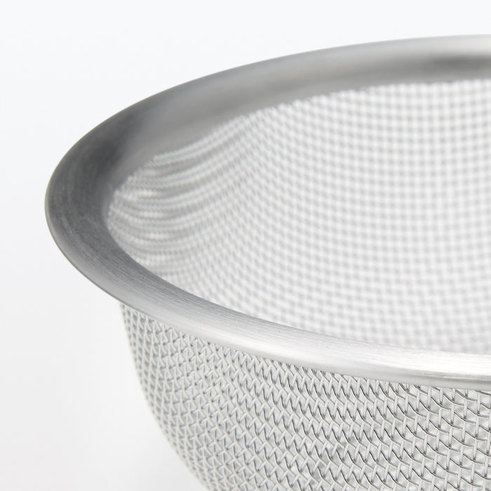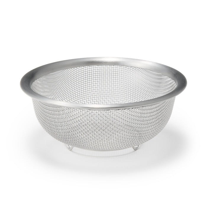 An extra small stainless steel mesh colander that can be used alone or with our stainless steel bowl series for a perfect fit that prevents spills from ill-fitting strainers. Light-weight and easy to drain.