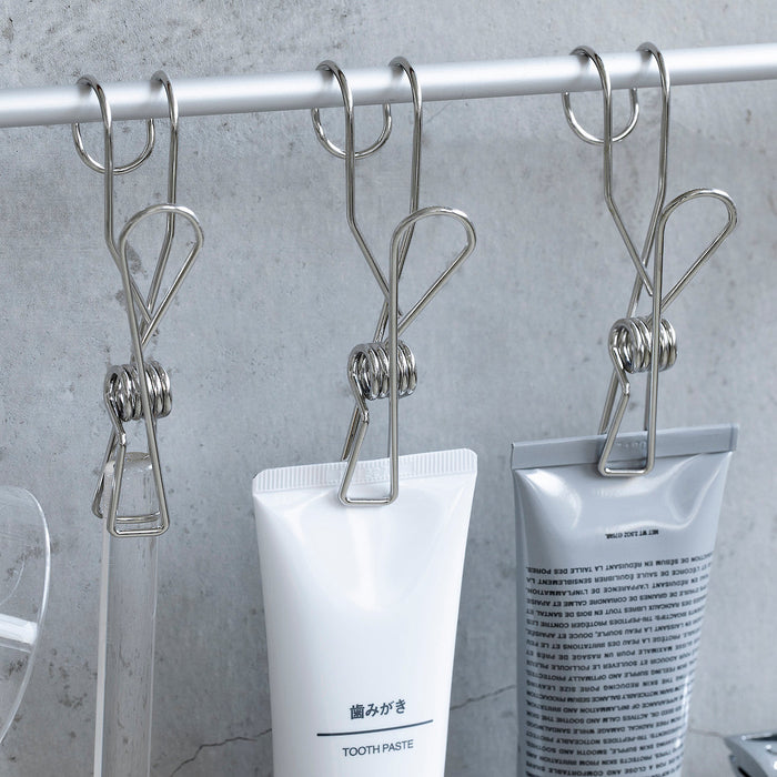 A clip made of rust-resistant 18-8 stainless steel that can be hung on a bar. Convenient for hanging recipe notes, dish towels, rubber gloves, etc. Comes in a set of 4 pieces.