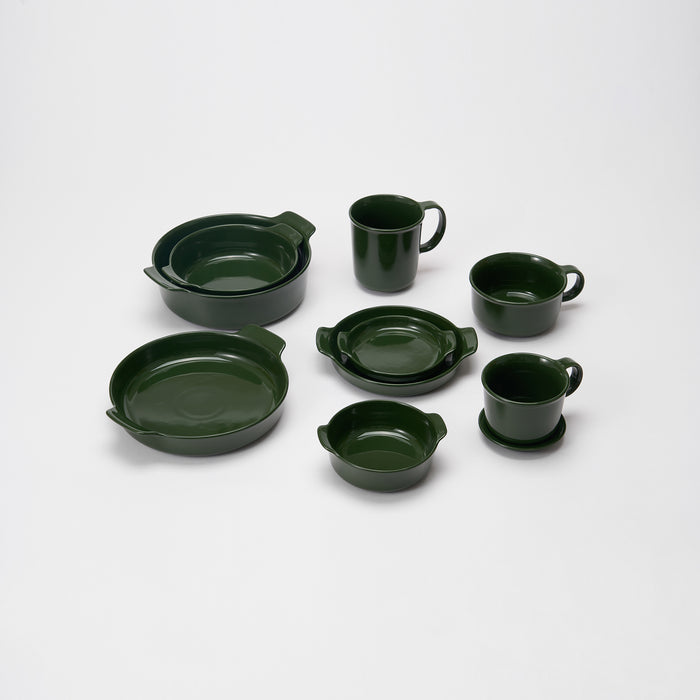 This small round plate has a raised edge makes it easier to scoop up food without mess, while making it easy to carry. Comes in a deep dark green colour provides a clean and earthy look that coordinates beautifully with any dinnerware. Designed for modern convenience, this plate is resistant to chipping and is fully compatible with the microwave, oven, and dishwasher.