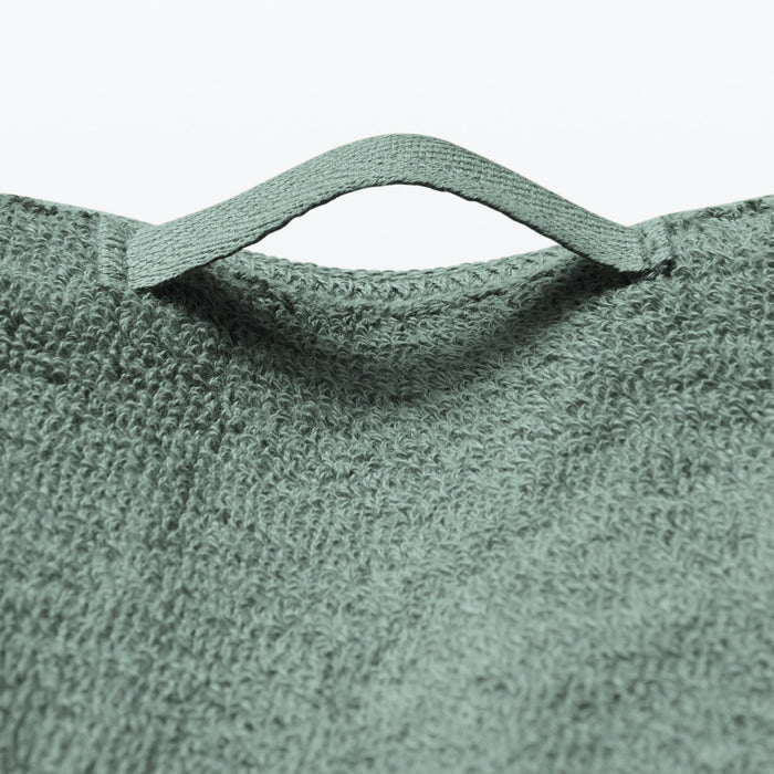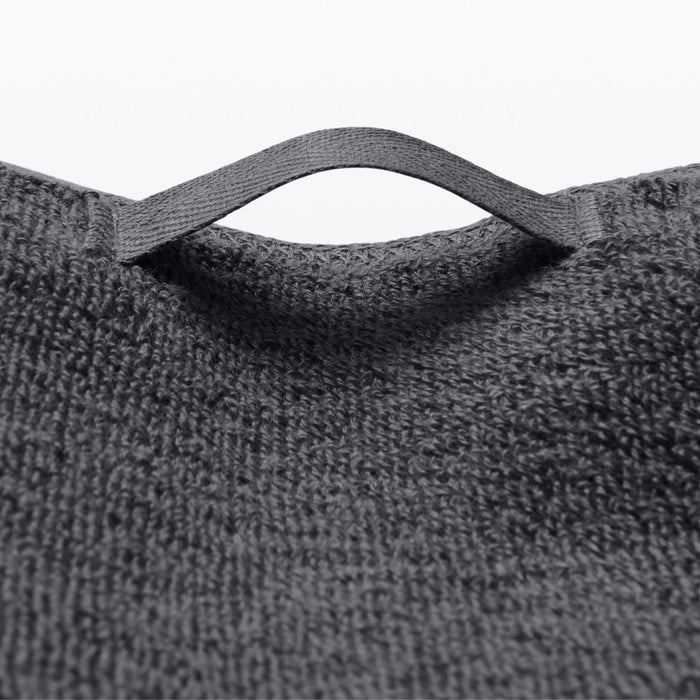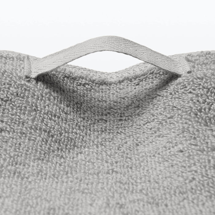 This bath towel neatly folds into a compact size, making it easy to store and convenient to carry when travelling. There is a loop that lets you hang it easily.