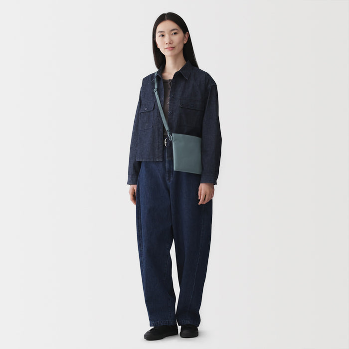 This compact, shoulder-slung pouch is the perfect size to hold all of your daily necessities for quick outings. Made from recycled polyester, it has a water repellent coating to protect your belongings. There is an interior divider to help keep its contents organized and easy to find.