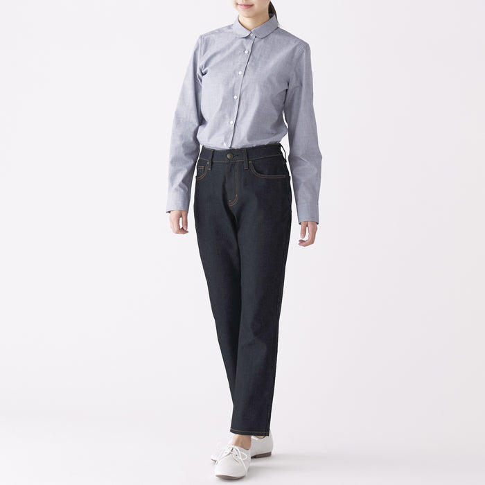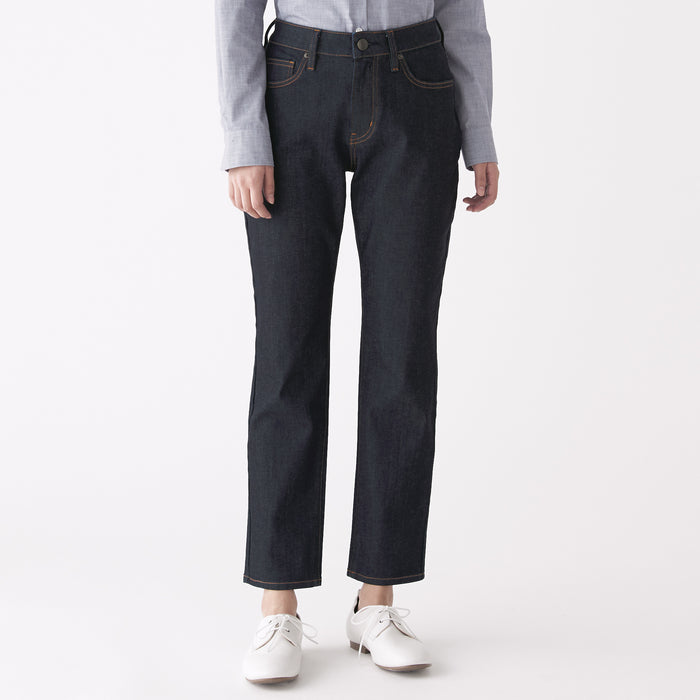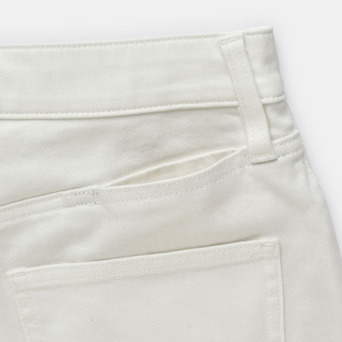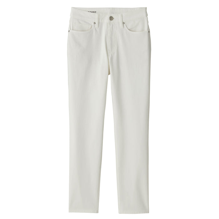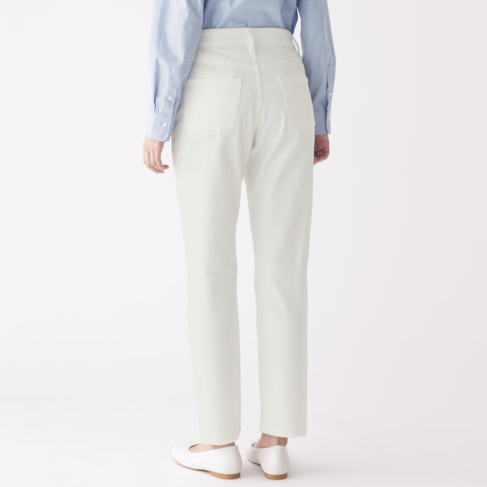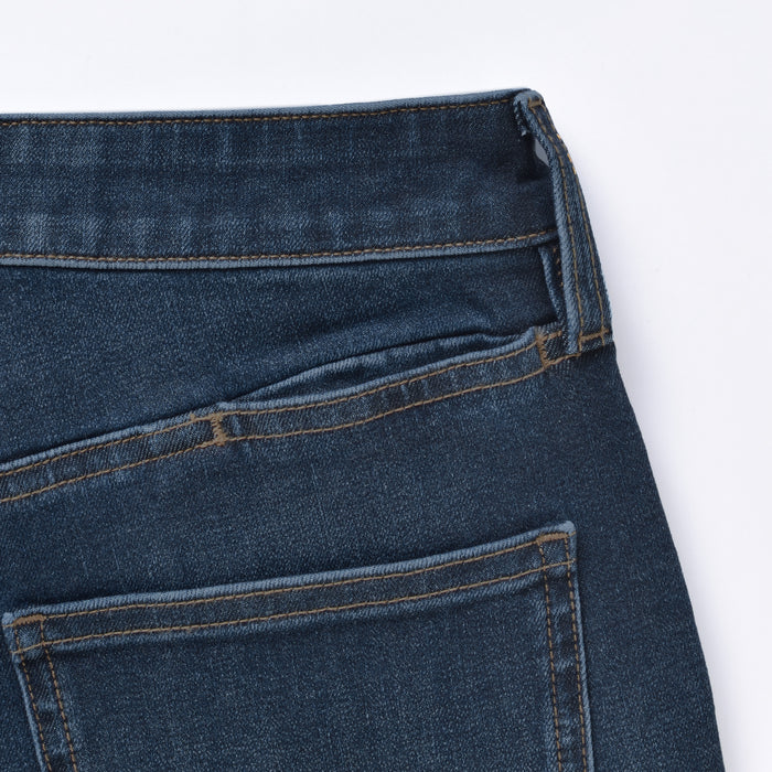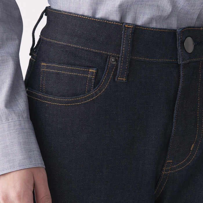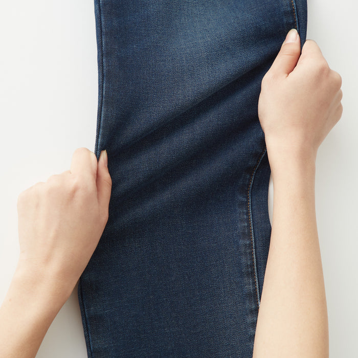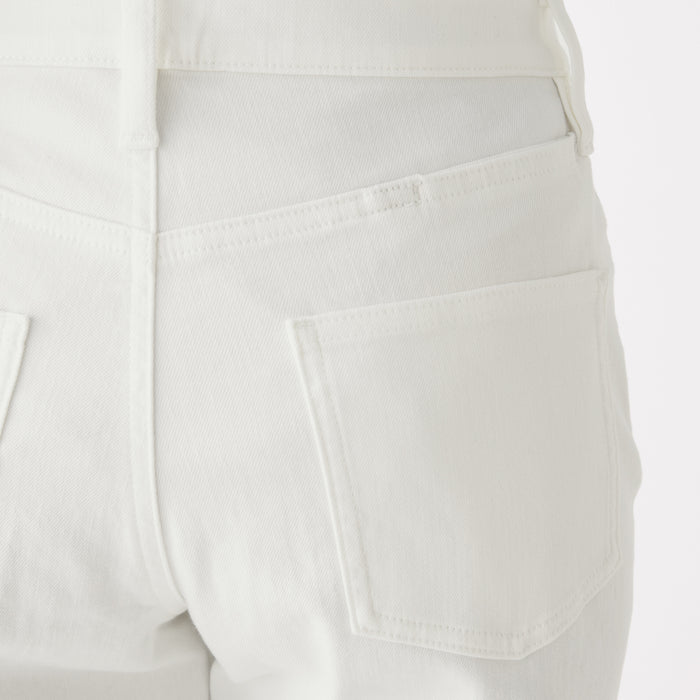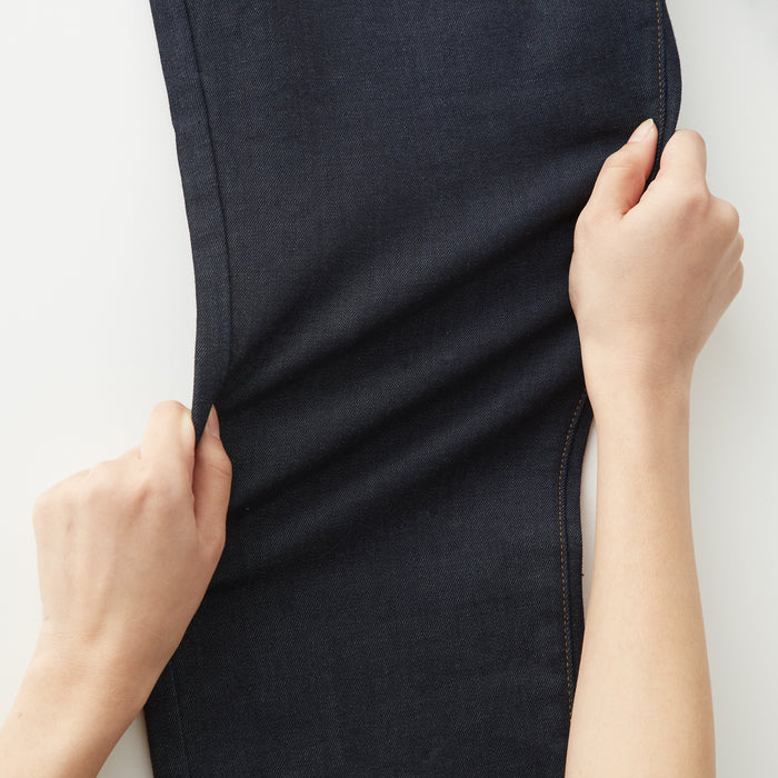 We have adopted a fabric that stretches in all directions, both vertically and horizontally. As it expands and contracts according to the movement of the body, our denim is easy to move and comfortable to wear. A stretch interlining with high elongation is used for the waistband. The pants are ankle length, please look at the size chart below for more details.