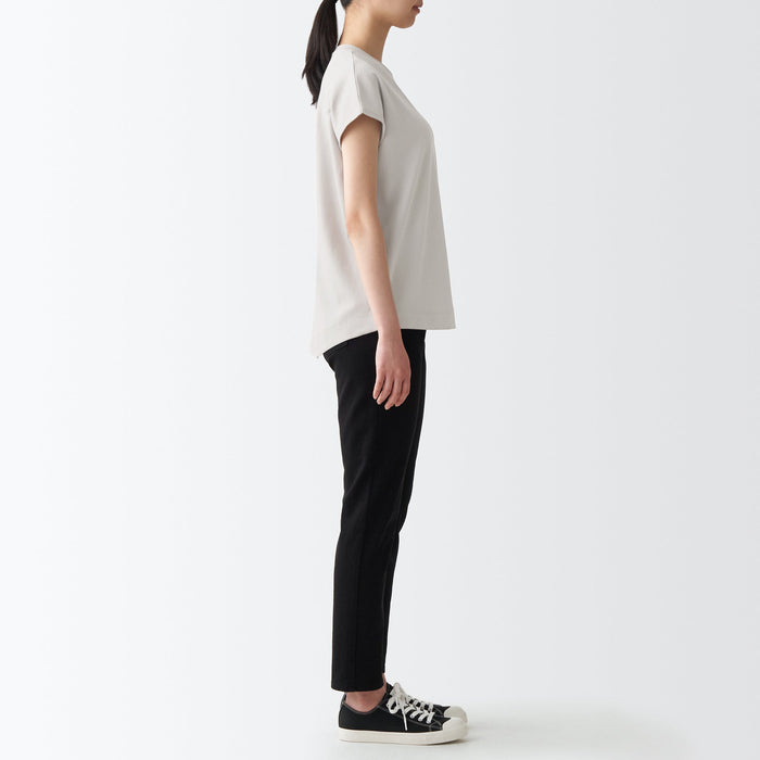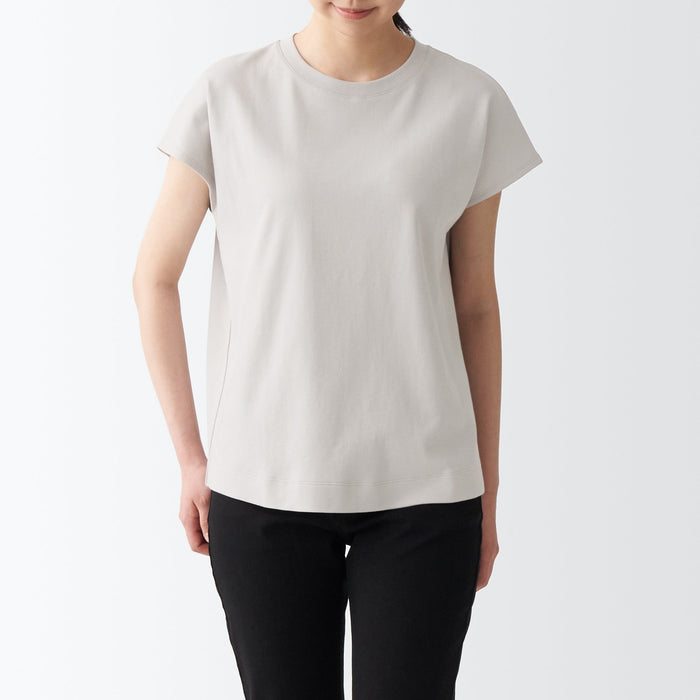 A French sleeve T-shirt with a soft surface with moderate thickness, prevents fluffing and made using organic cotton.