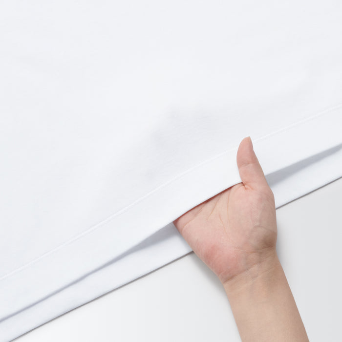 A T-shirt with soft surface with moderate thickness, prevents fluffing.