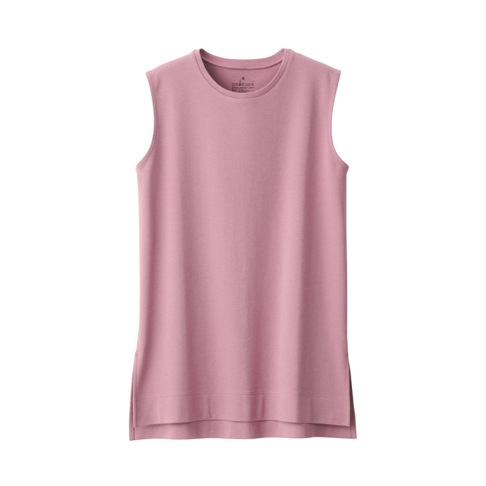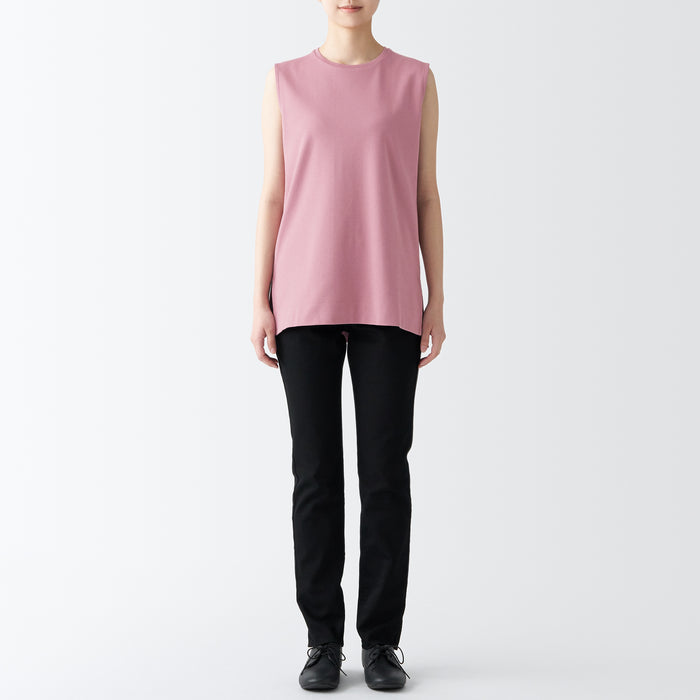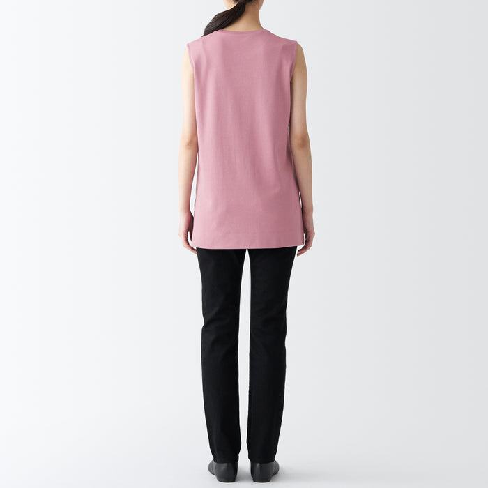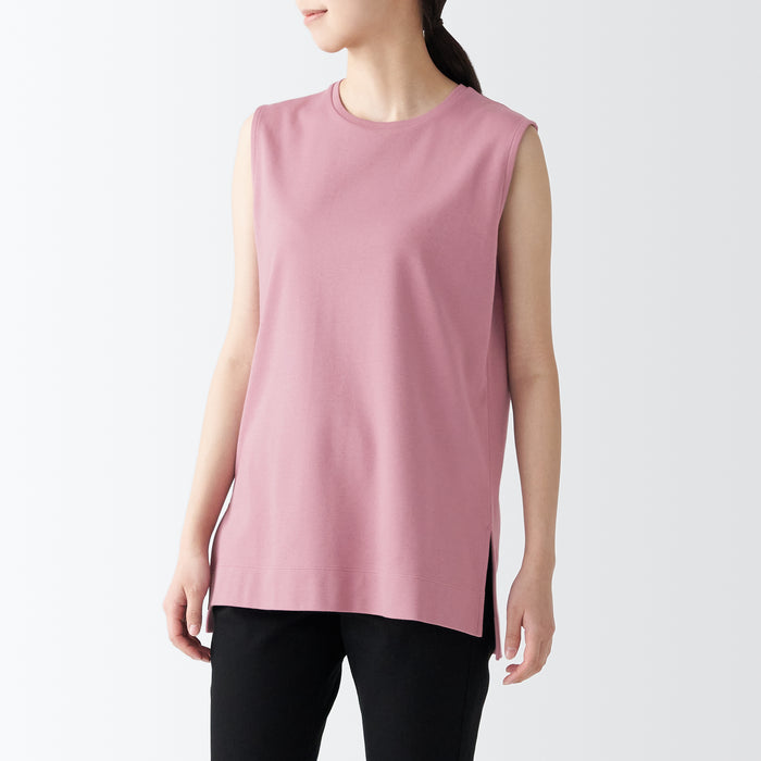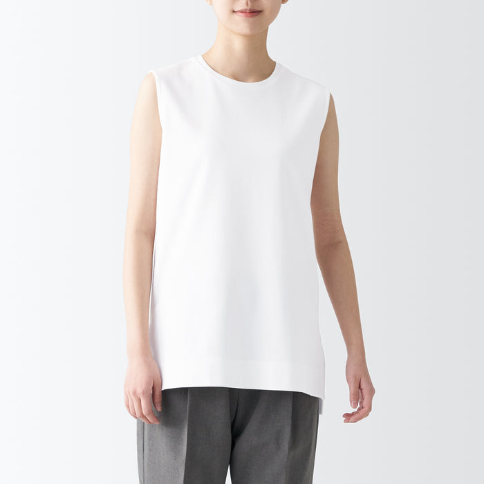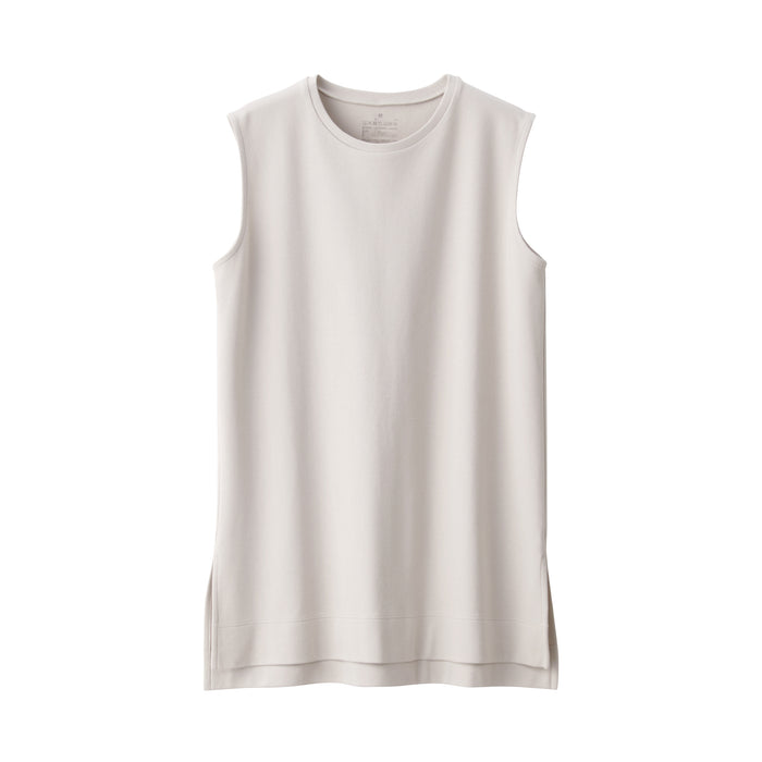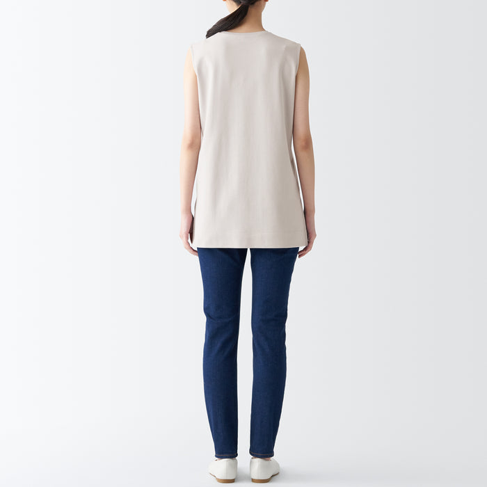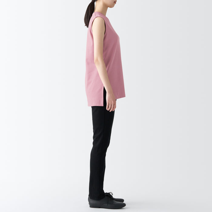A sleeveless tunic knitted with fine count yarn for its smooth texture. Minimal Pilling. Made with organic cotton.