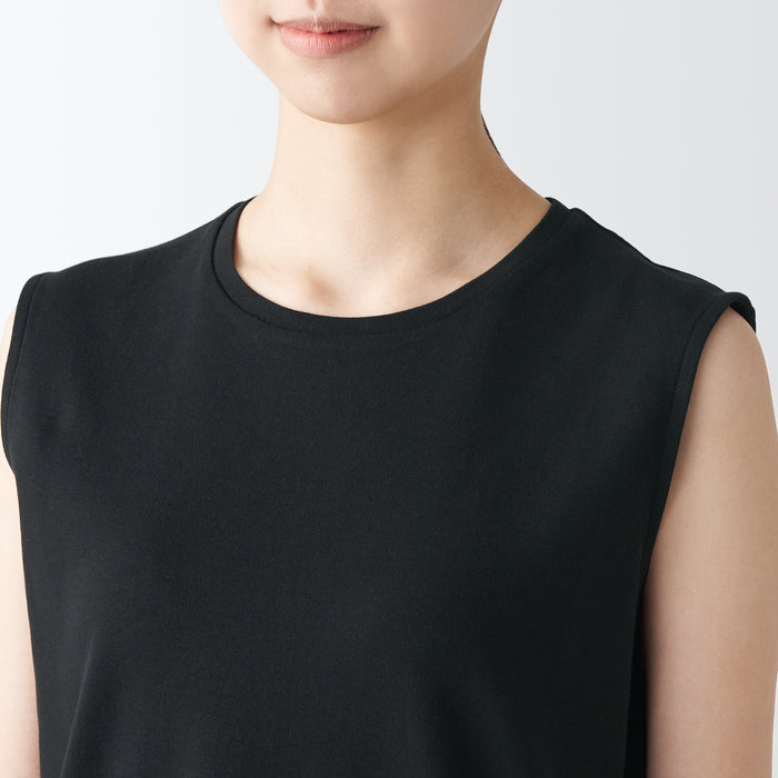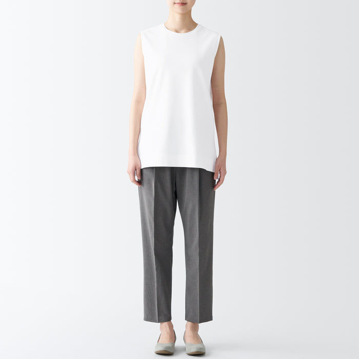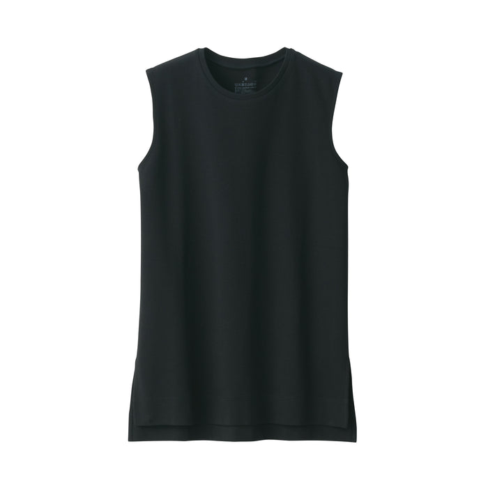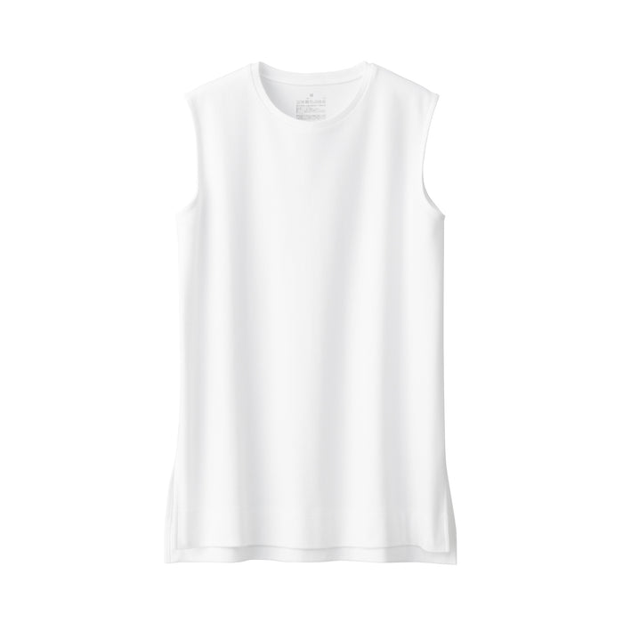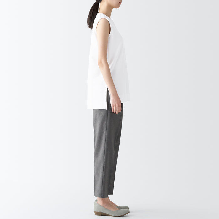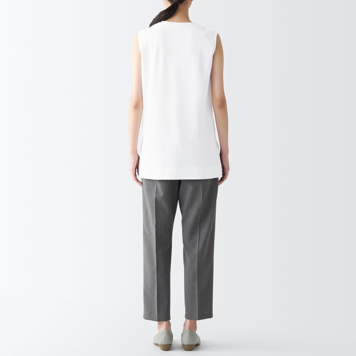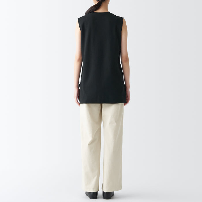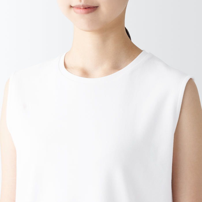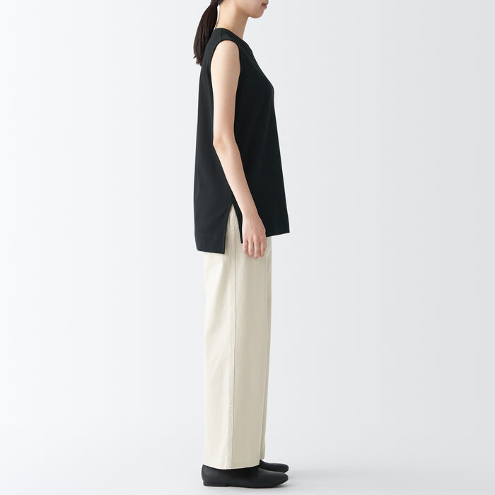 A sleeveless tunic knitted with fine count yarn for its smooth texture. Minimal Pilling. Made with organic cotton.