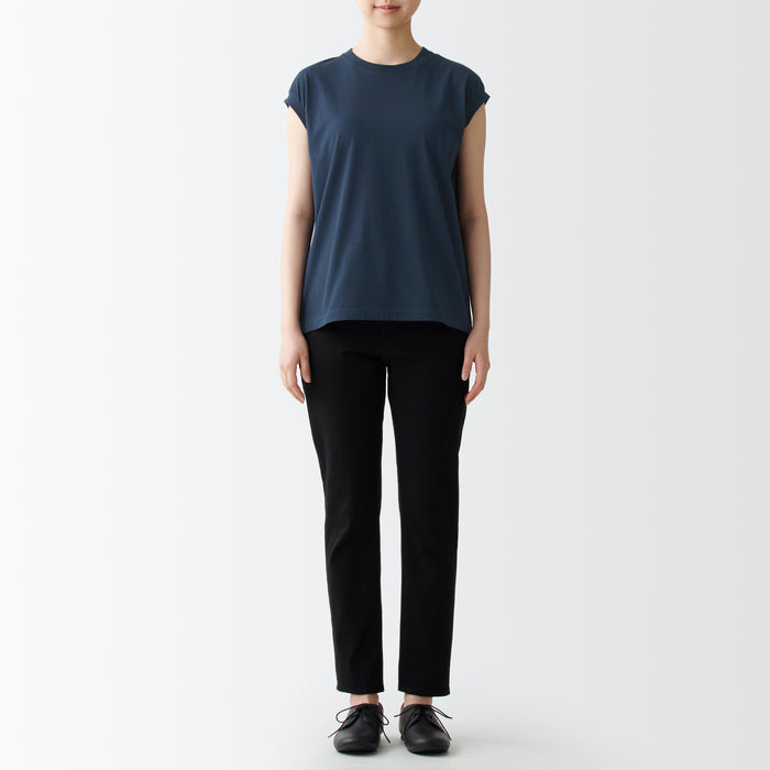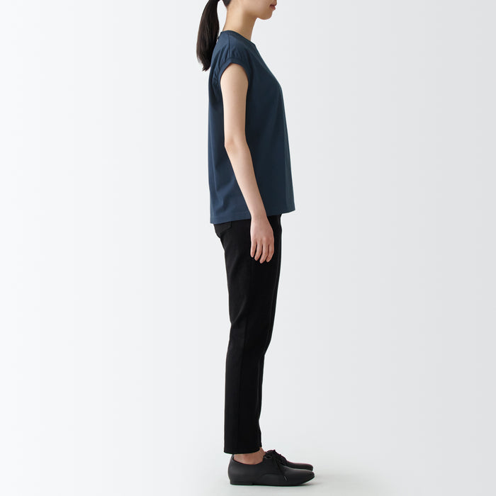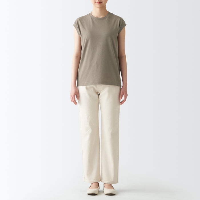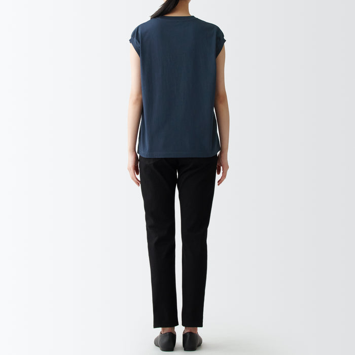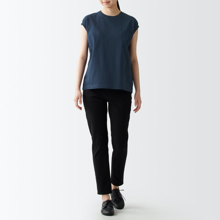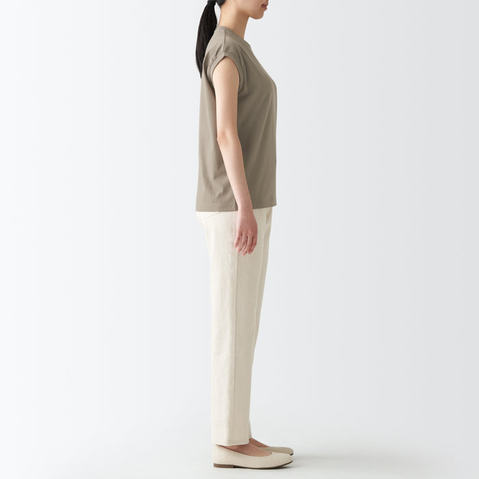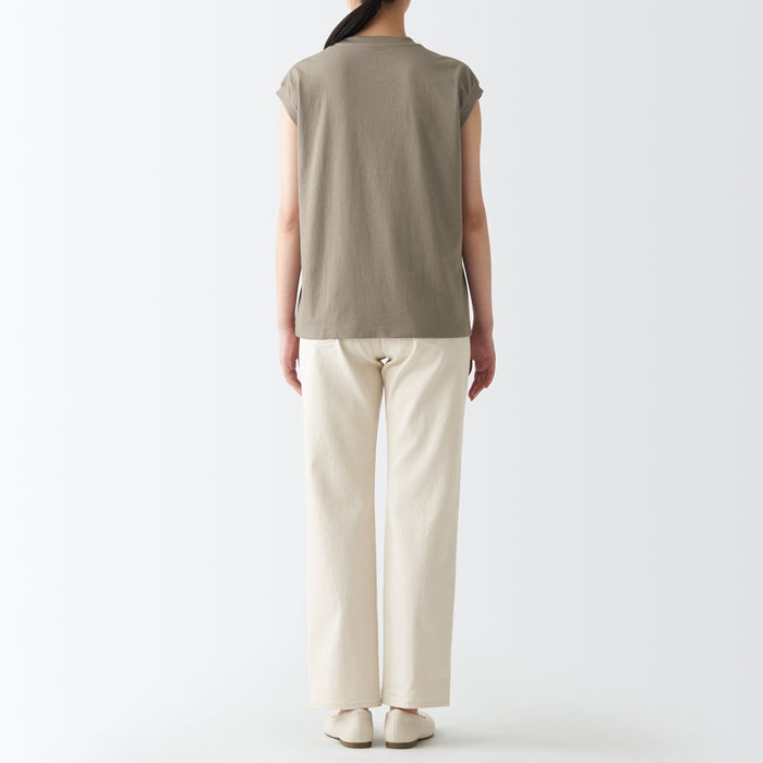 A comfortable and durable T-shirt with a well-designed neckline. Made with organic cotton, the fabric is just the right thickness for wearing alone or as an inner layer. The sleeveless cut keeps you cool and comfortable while covering the shoulders and sides, making it easy to wear on its own. The silhouette is loose and relaxed.