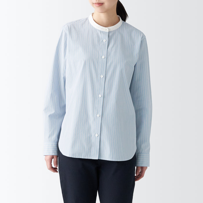 Women's Washed Broad Stand Collar Long Sleeve Shirt