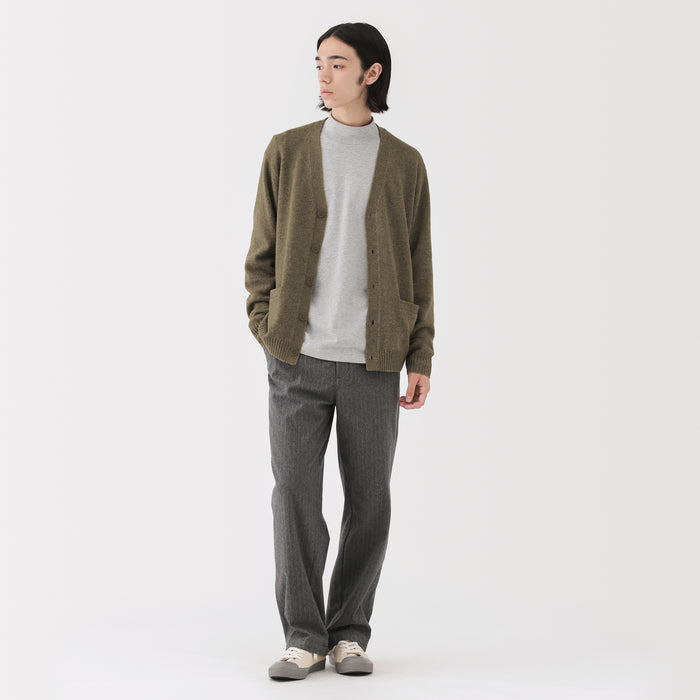 Keep warm in this cozy V-neck cardigan, made with soft and plush wool. The middle-gauge knit is just the right thickness for layering, and its shrink-proof finish makes it easily washable at home without any hassle.